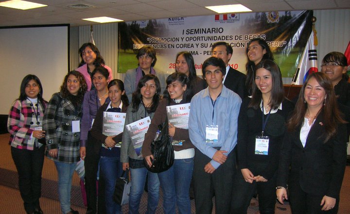 Con un lleno total en el Salón de Grados de la Facultad de Ciencias Económicas de la UNMSM, y con la presencia del Embajador de Corea en el Perú y el Director de KOICA, se desarrollo el jueves 28 de octubre el I Seminario sobre Becas a Corea, Experiencias y su aplicación en el Perú